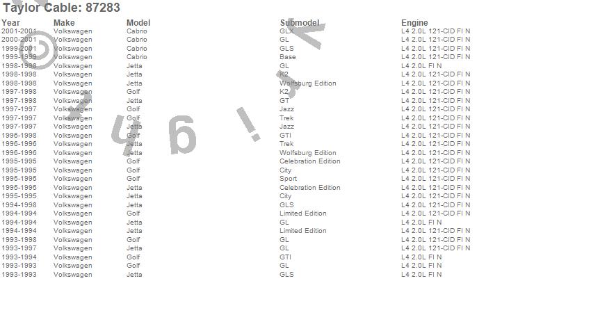 Below is an abreviated list of applications for the ThunderVolt 40 ohm Ferrite Core Performance Ignition Wire Set.