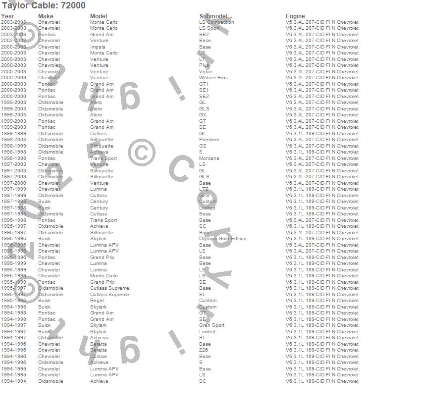 Achieva, Alero, Beretta, Century, Corsica, Cutlass, Cutlass Supreme, Grand Am, Grand Prix, Impala, Lumina, Lumina APV, Monte Carlo, Regal, Silhouette, Skylark, Trans Sport, Venture, Buick, Chevrolet more…