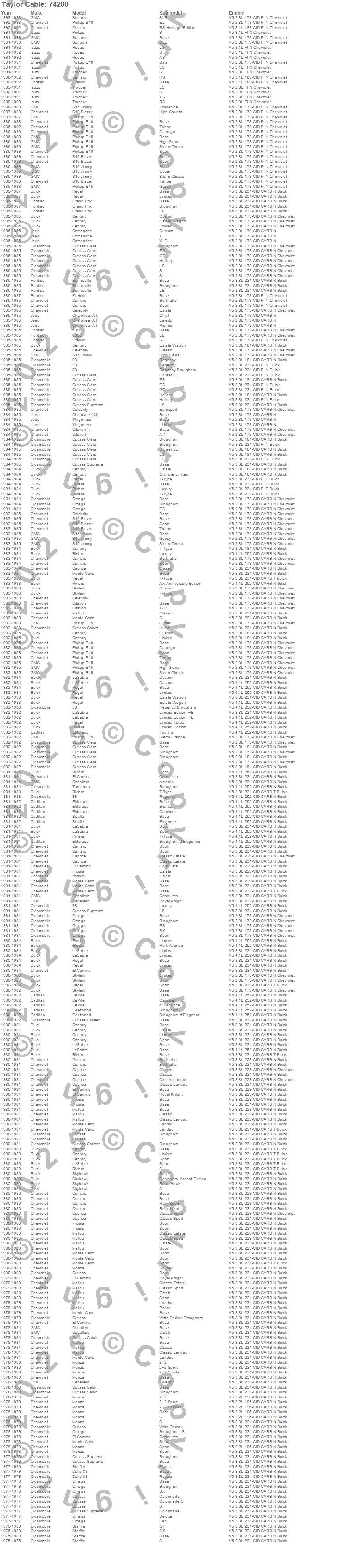 6000, 98, Bonneville, Caballero, Camaro, Caprice, Celebrity, Century, Cherokee (XJ), Citation, Citation II, Comanche, Cutlass, Cutlass Calais, Cutlass Ciera, Cutlass Cruiser, Cutlass Salon, Cutlass Supreme, Delta 88, DeVille more…
