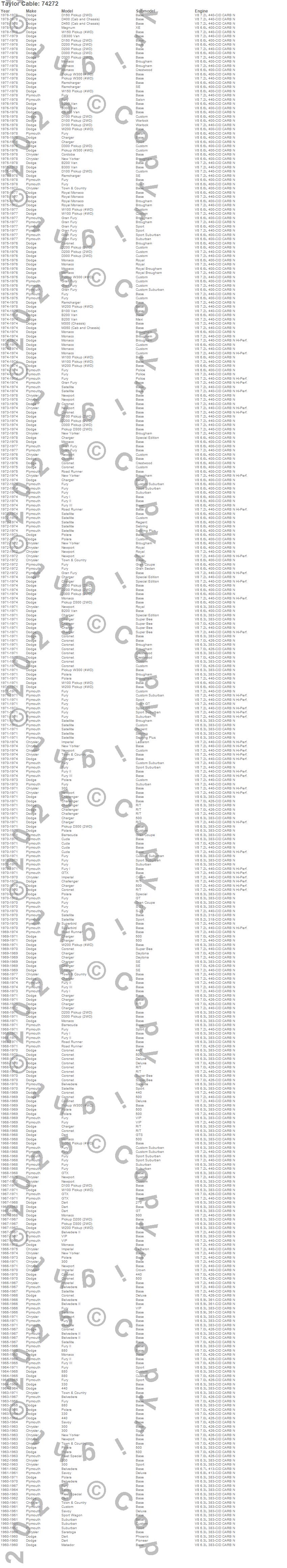 300, 330, 440, 880, B100 Van, B200 Van, B300 Van, Barracuda, Belvedere, Belvedere II, CB300 Van, Challenger, Charger, Cordoba, Coronet, Cuda, Custom, D100 Pickup, D150 Pickup, D200 Pickup more…