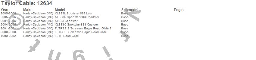 FLTR Road Glide, FLTR/I Road Glide, FLTRSEI Screamin Eagle Road Glide, FLTRSEI2 Screamin Eagle Road Glide 2, XL883 Sportster, XL883C Sportster 883 Custom, XL883L Sportster 883 Low, XL883R Sportster 883 Roadster, Harley Davidson (MC), 2006, 2005, 2004, 2003, 2002, 2001, 2000, 1999 more…