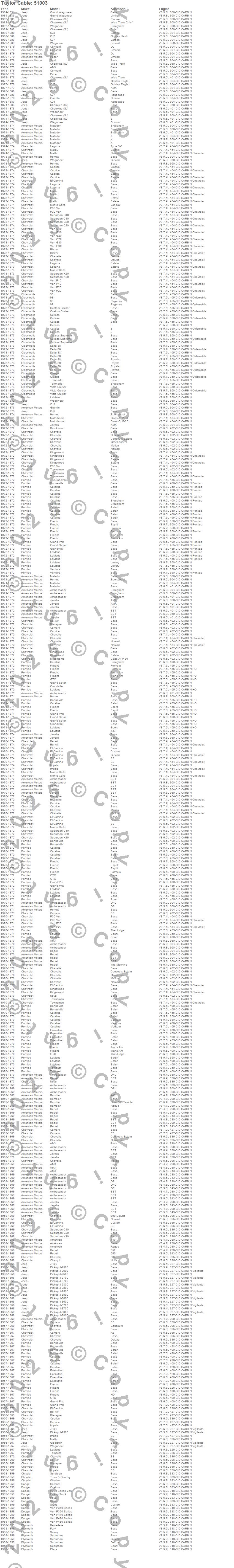 98, Ambassador, American, AMX, Bel Air, Belvedere, Biscayne, Blazer, Bonneville, Brookwood, C10 Suburban, C20 Suburban, Camaro, Caprice, Catalina, Cherokee (SJ), Chevelle, Chevy II, CJ5, CJ6 more…