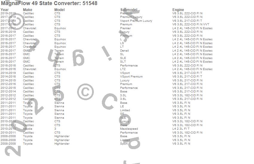 Below is an abreviated list of applications for the Direct Fit Catalytic Converter.
