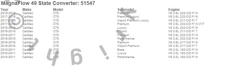 Below is an abreviated list of applications for the Direct Fit Catalytic Converter.
