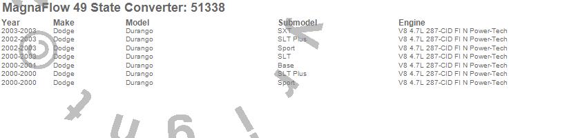 Below is an abreviated list of applications for the Direct Fit Catalytic Converter.