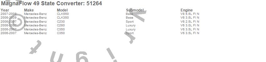 Below is an abreviated list of applications for the Direct Fit Catalytic Converter.