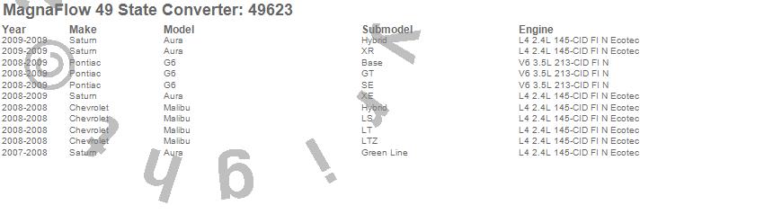 Below is an abreviated list of applications for the Direct Fit Catalytic Converter.
