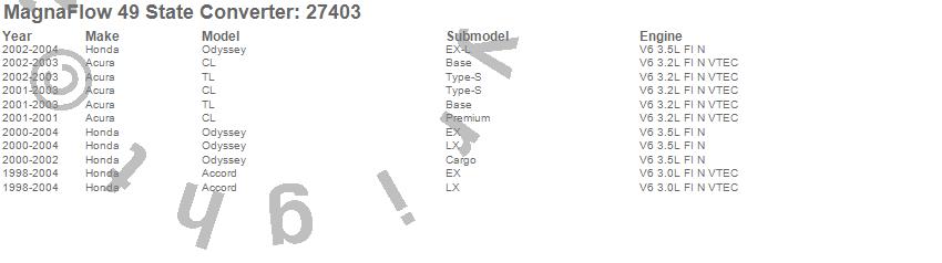 Below is an abreviated list of applications for the Direct Fit Catalytic Converter.