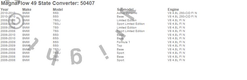 Below is an abreviated list of applications for the Direct Fit Catalytic Converter.