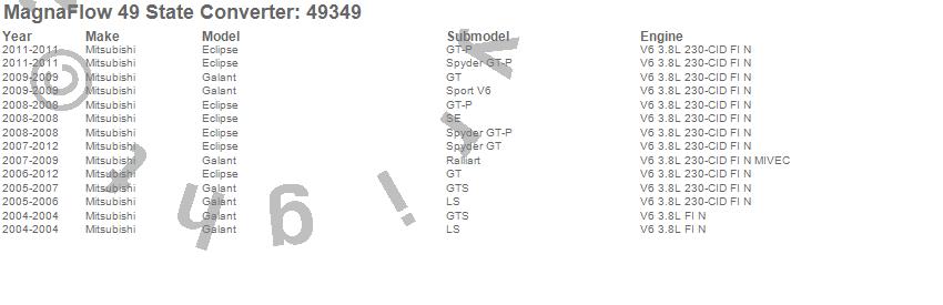 Below is an abreviated list of applications for the Direct Fit Catalytic Converter.