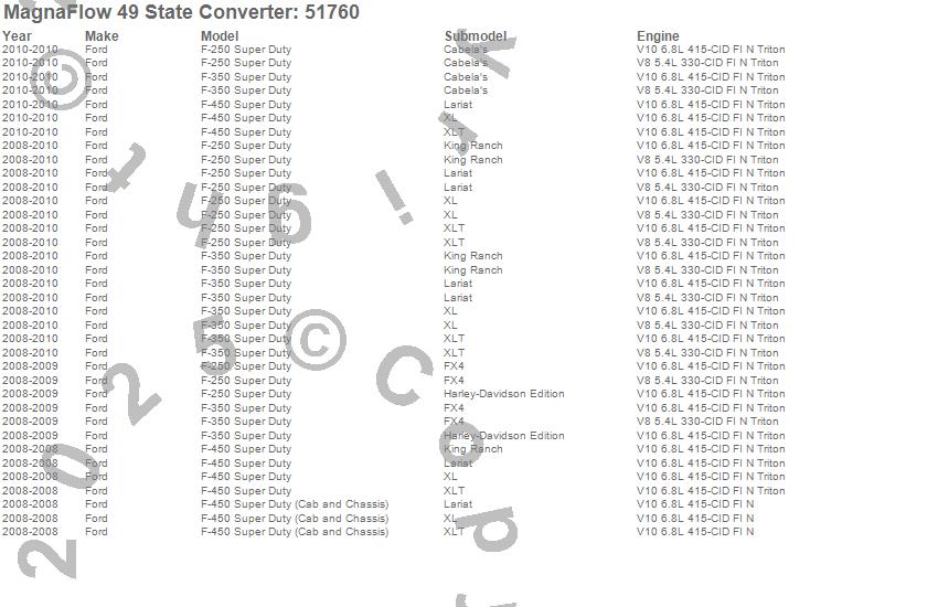 Below is an abreviated list of applications for the Direct Fit Catalytic Converter.