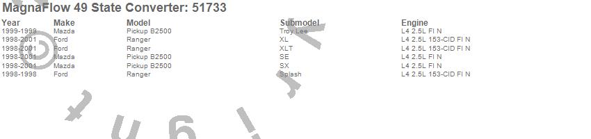 Below is an abreviated list of applications for the Direct Fit Catalytic Converter.