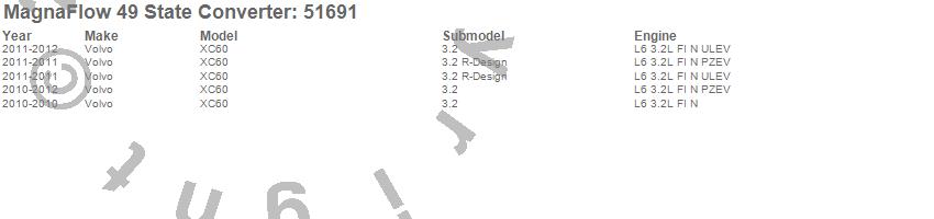 Below is an abreviated list of applications for the Direct Fit Catalytic Converter.
