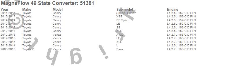 Below is an abreviated list of applications for the Direct Fit Catalytic Converter.
