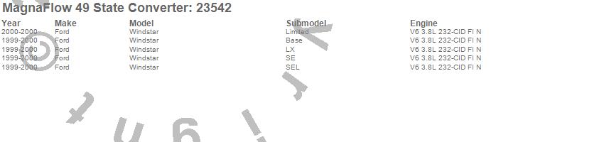 Below is an abreviated list of applications for the Direct Fit Catalytic Converter.