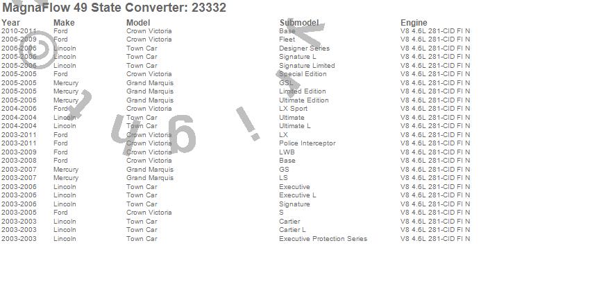 Below is an abreviated list of applications for the Direct Fit Catalytic Converter.
