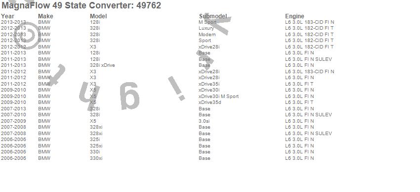 Below is an abreviated list of applications for the Direct Fit Catalytic Converter.