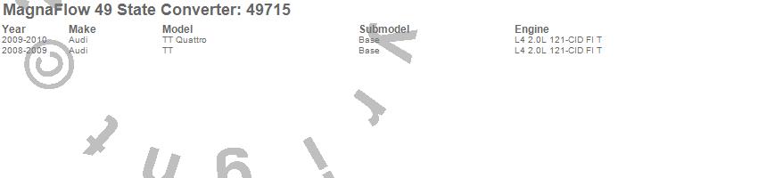 Below is an abreviated list of applications for the Direct Fit Catalytic Converter.