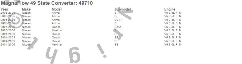 Below is an abreviated list of applications for the Direct Fit Catalytic Converter.