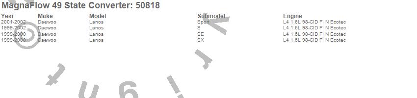 Below is an abreviated list of applications for the Direct Fit Catalytic Converter.