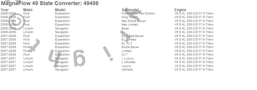 Below is an abreviated list of applications for the Direct Fit Catalytic Converter.
