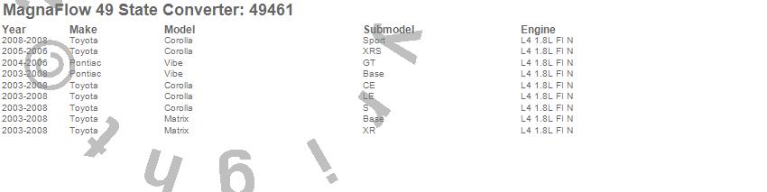 Below is an abreviated list of applications for the Direct Fit Catalytic Converter.