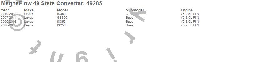 Below is an abreviated list of applications for the Direct Fit Catalytic Converter.