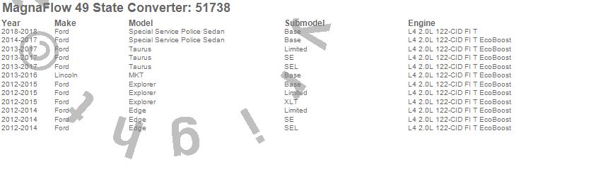 Below is an abreviated list of applications for the Direct Fit Catalytic Converter.