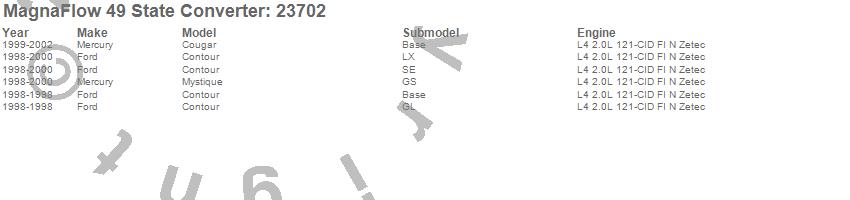 Below is an abreviated list of applications for the Direct Fit Catalytic Converter.