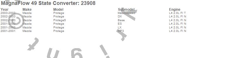 Below is an abreviated list of applications for the Direct Fit Catalytic Converter.