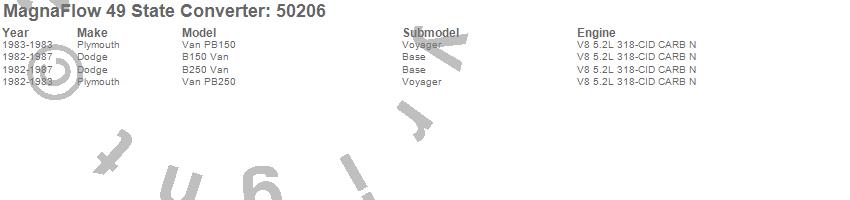 Below is an abreviated list of applications for the Direct Fit Catalytic Converter.