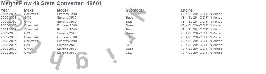 Below is an abreviated list of applications for the Direct Fit Catalytic Converter.