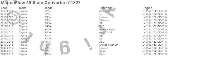 Below is an abreviated list of applications for the Direct Fit Catalytic Converter.