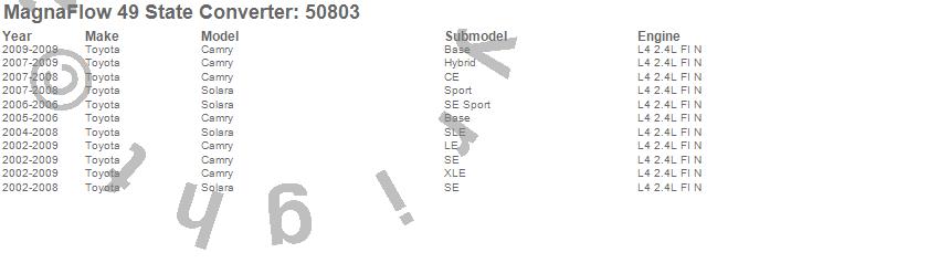 Below is an abreviated list of applications for the Direct Fit Catalytic Converter.