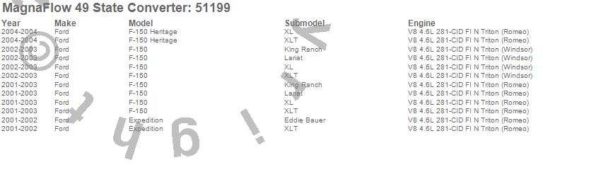 Below is an abreviated list of applications for the Direct Fit Catalytic Converter.