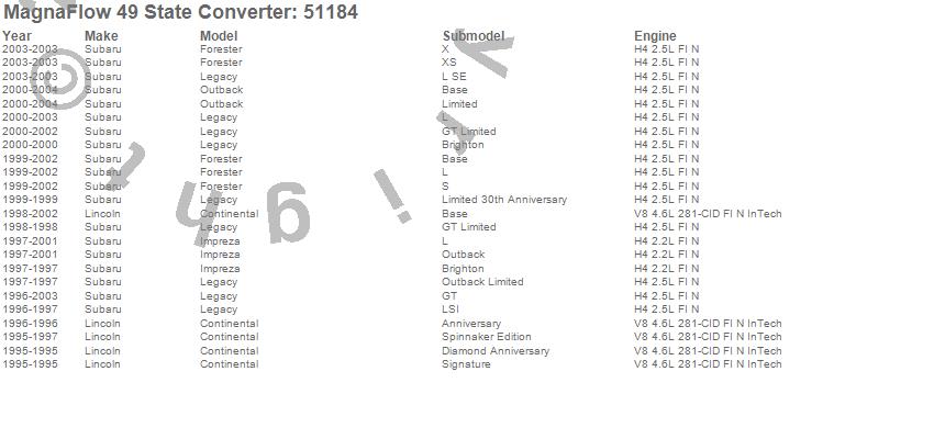 Below is an abreviated list of applications for the Universal-Fit Catalytic Converter.