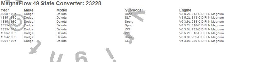 Below is an abreviated list of applications for the Direct Fit Catalytic Converter.
