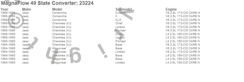 Below is an abreviated list of applications for the Direct Fit Catalytic Converter.