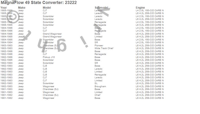 Below is an abreviated list of applications for the Direct Fit Catalytic Converter.