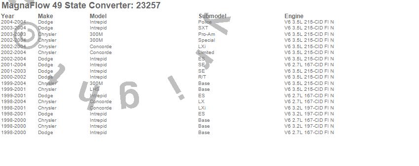 Below is an abreviated list of applications for the Direct Fit Catalytic Converter.