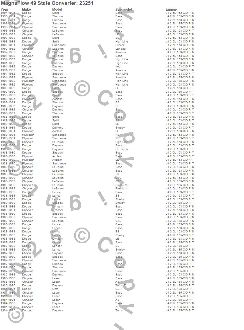 Below is an abreviated list of applications for the Direct Fit Catalytic Converter.