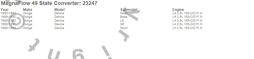 Below is an abreviated list of applications for the Direct Fit Catalytic Converter.