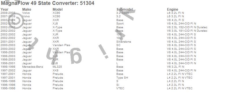 Below is an abreviated list of applications for the Universal-Fit Catalytic Converter.