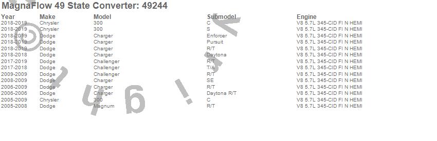 Below is an abreviated list of applications for the Direct Fit Catalytic Converter.