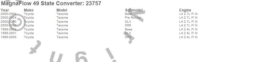 Below is an abreviated list of applications for the Direct Fit Catalytic Converter.