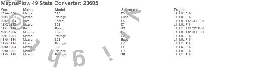 Below is an abreviated list of applications for the Direct Fit Catalytic Converter.