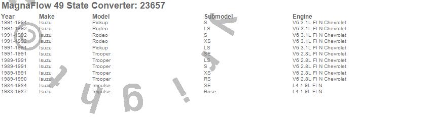 Below is an abreviated list of applications for the Direct Fit Catalytic Converter.