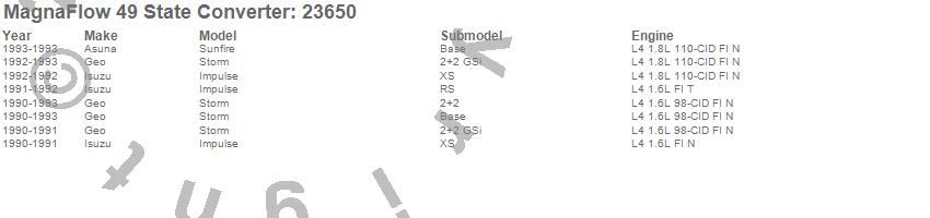 Below is an abreviated list of applications for the Direct Fit Catalytic Converter.