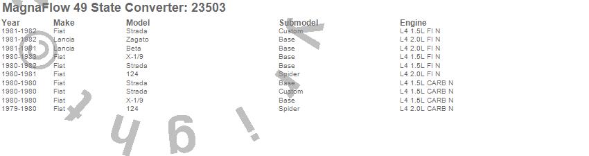 Below is an abreviated list of applications for the Direct Fit Catalytic Converter.