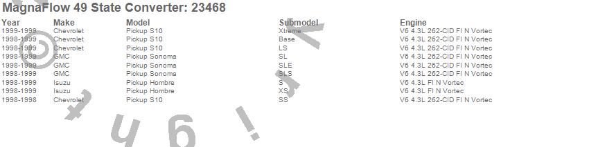 Below is an abreviated list of applications for the Direct Fit Catalytic Converter.